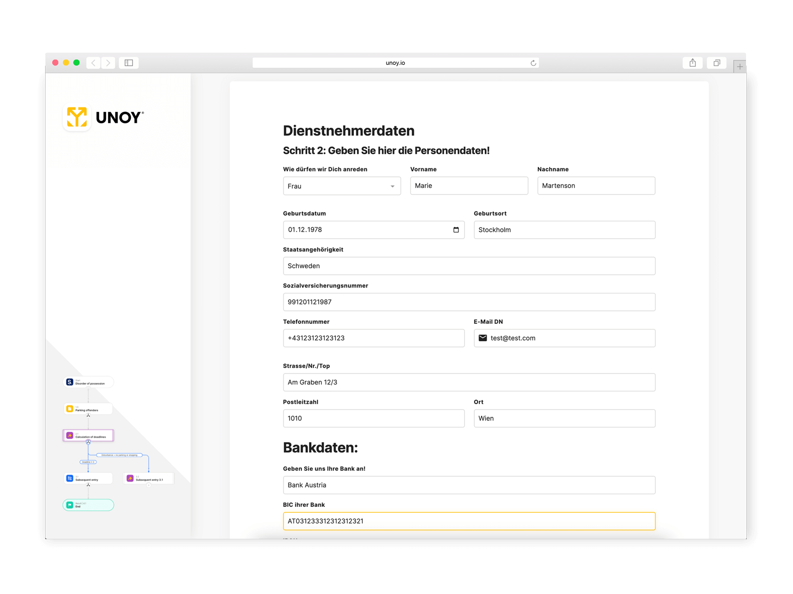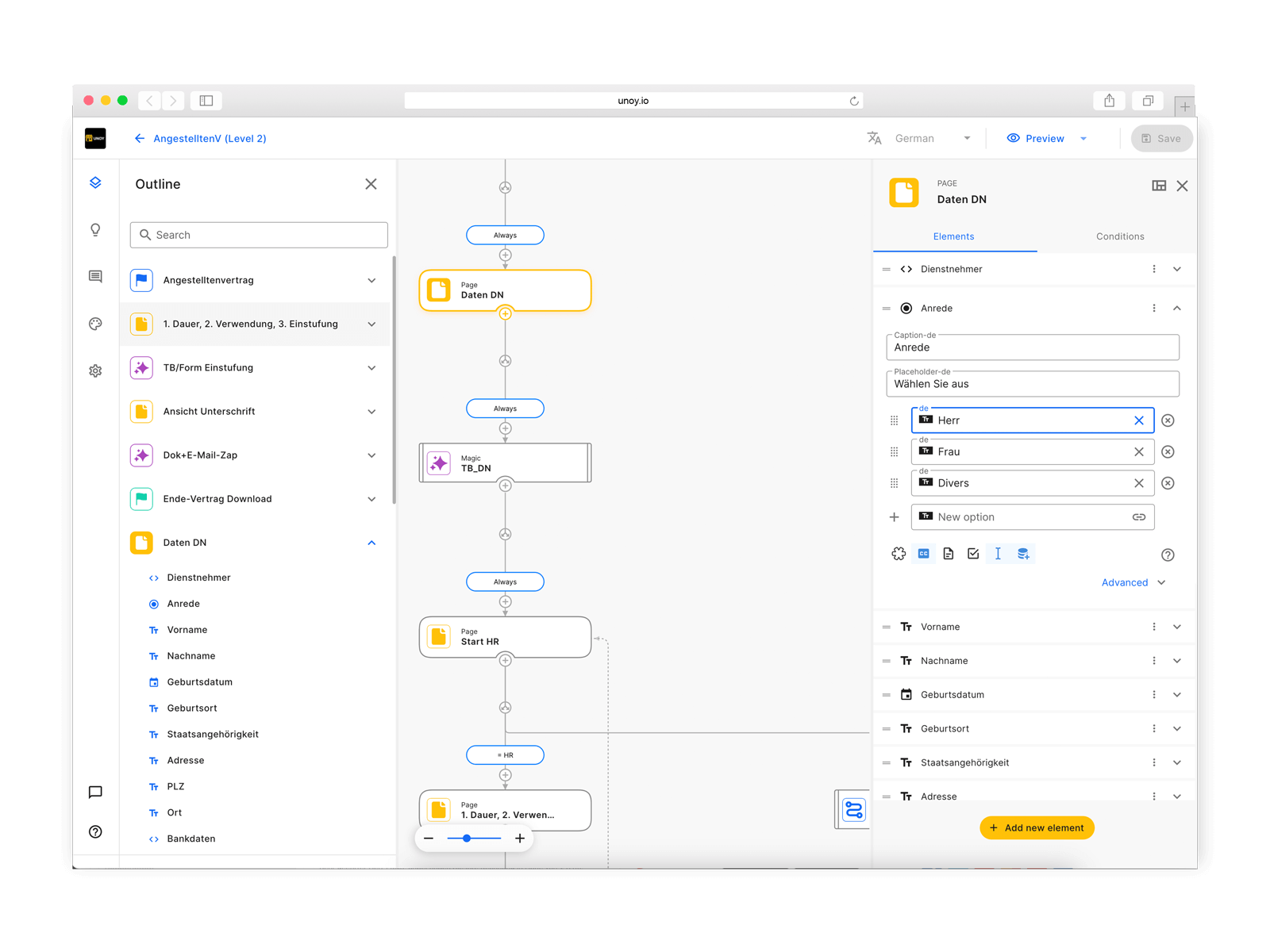 The UNOY Employment Contract Flow offers you the following features: