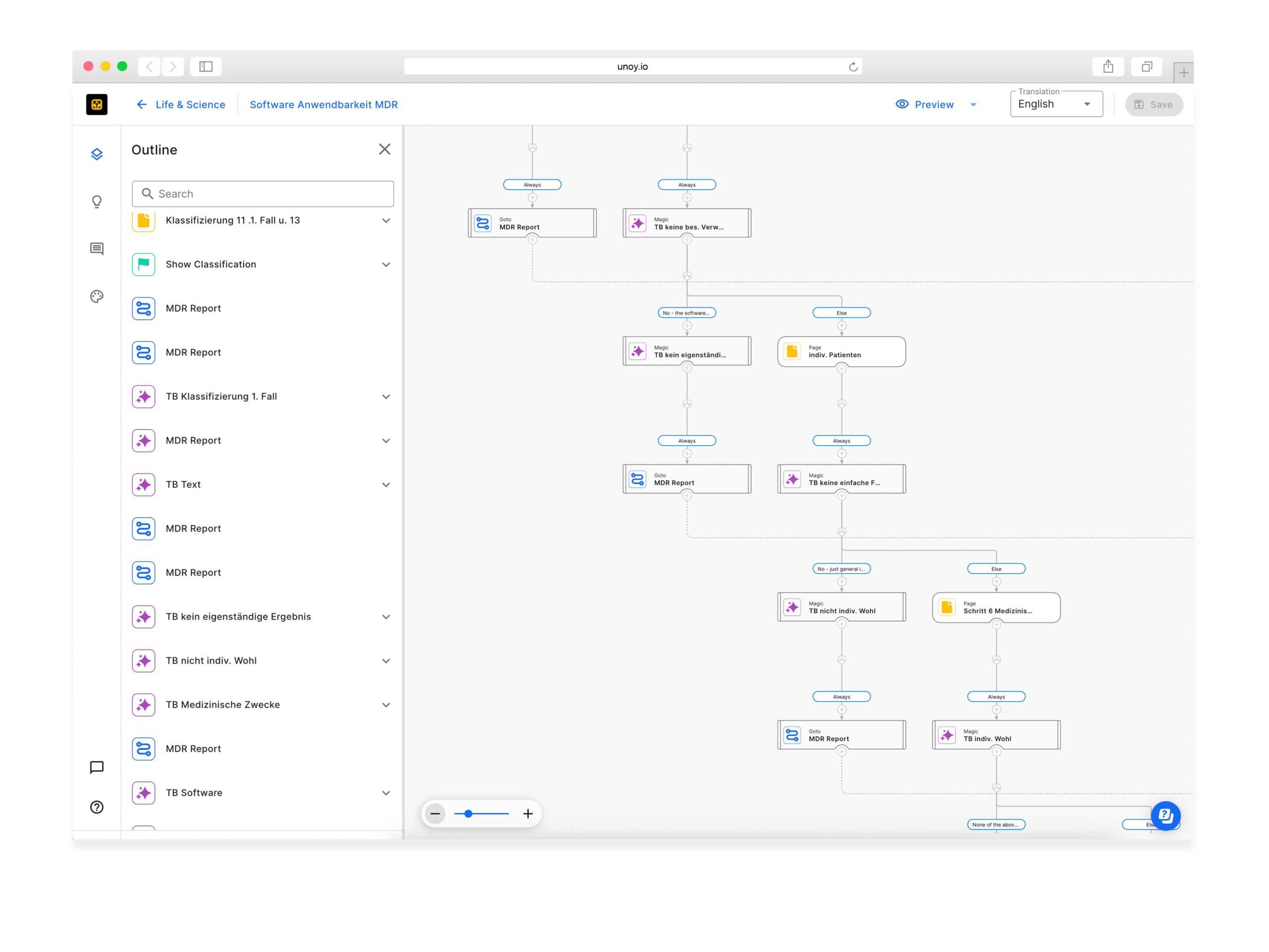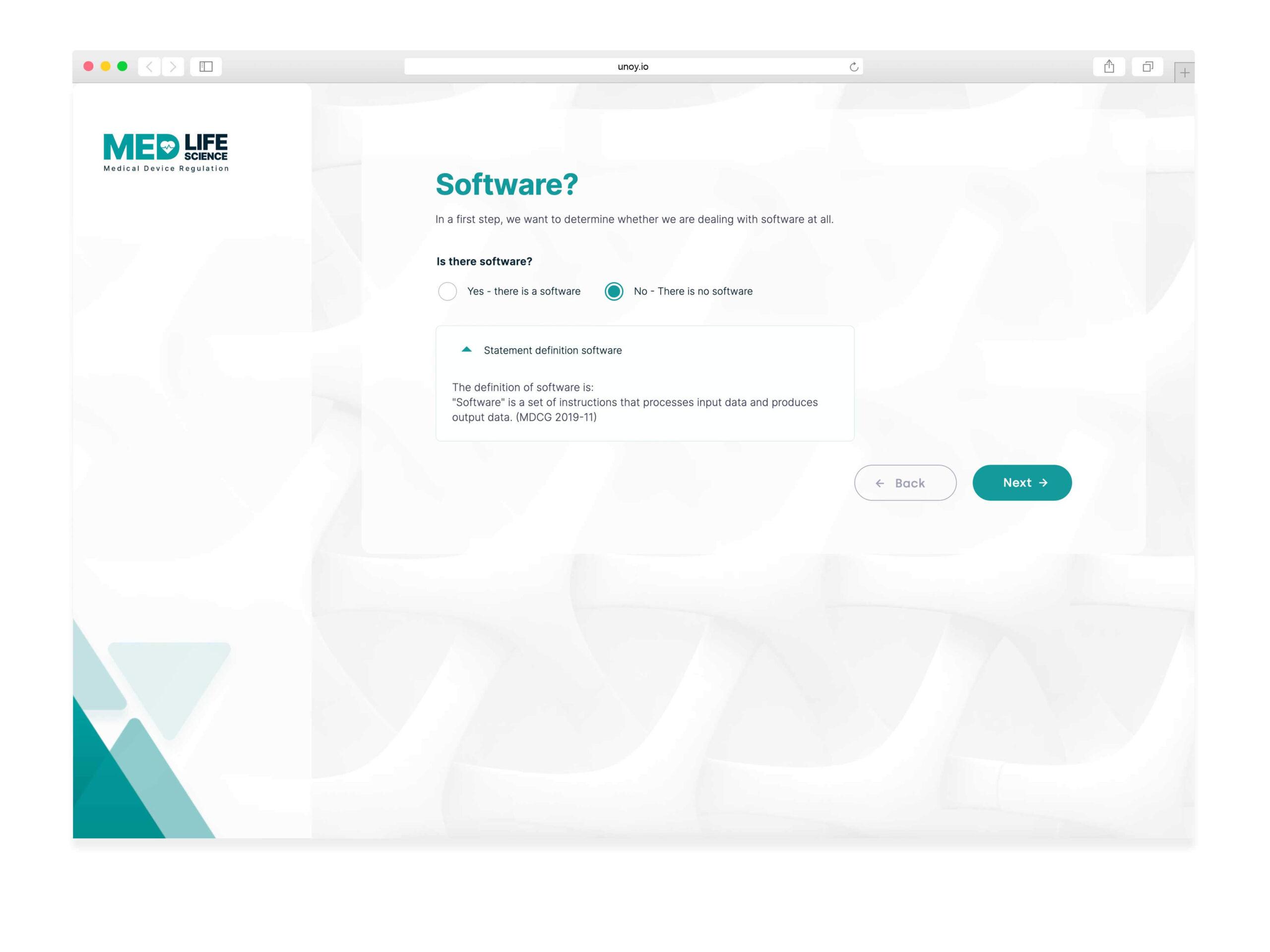 We created a KAPP for software development companies in the medical and life science industry to comply with Medical Devices Regulation. This tool identifies if software falls under the regulation and how to categorize it.