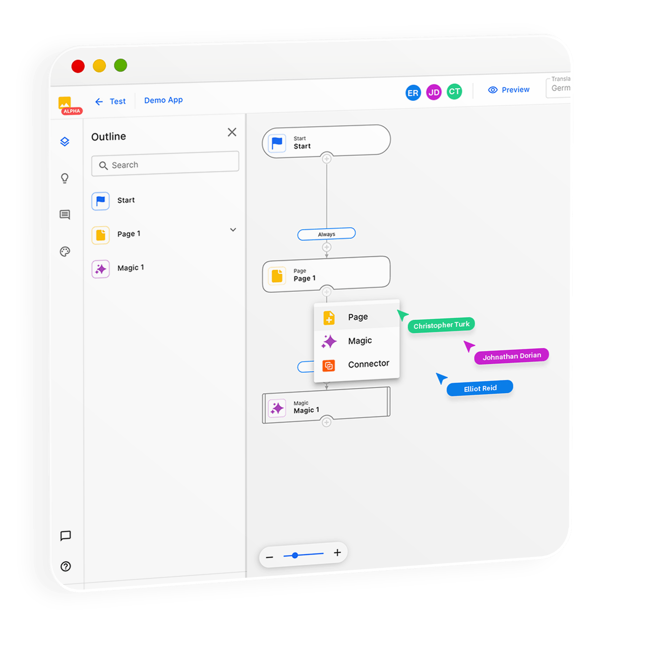 Combine your expertise with AI skills: reading documents and understanding conversations help with complex decisions and advice. Use pre-built AI models like OpenAI or integrate your own AI models.