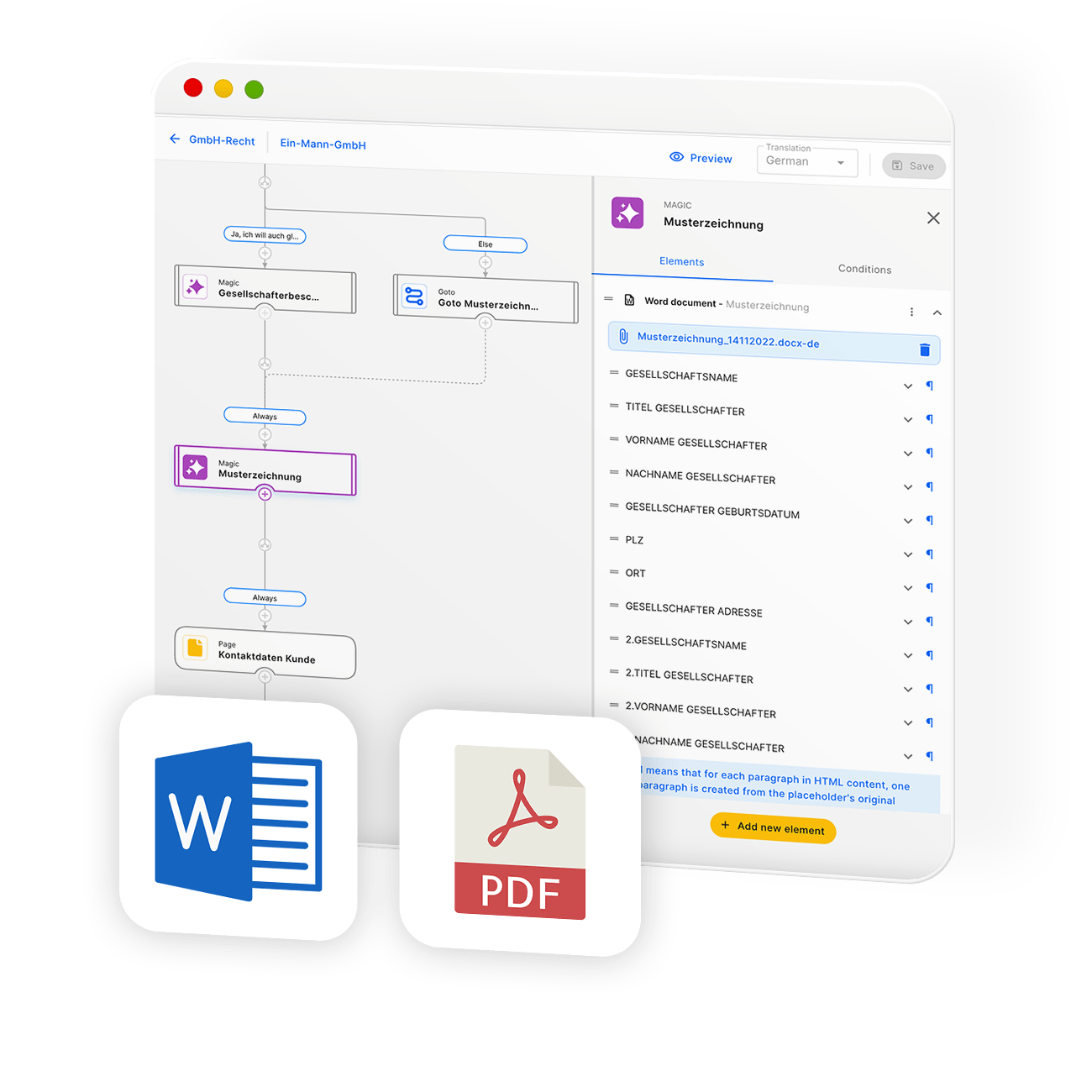 Generate custom PDF’s or Word documents from the variable data you receive from your forms and send them via email or make it available for download.