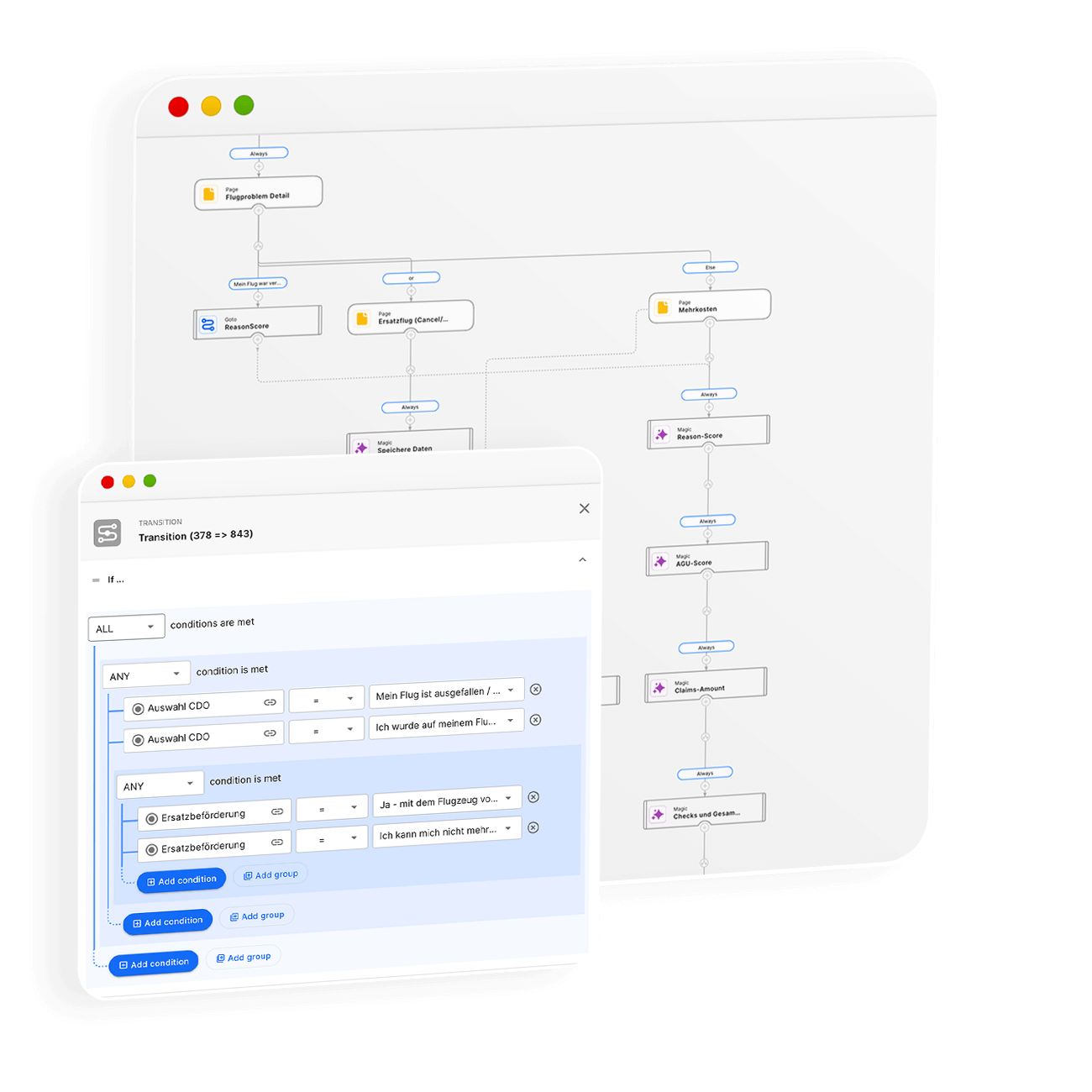 Use conditions to create logical rules for simple and complex decisions in your business process. Our visual UNOY Designer keeps things easy to read.