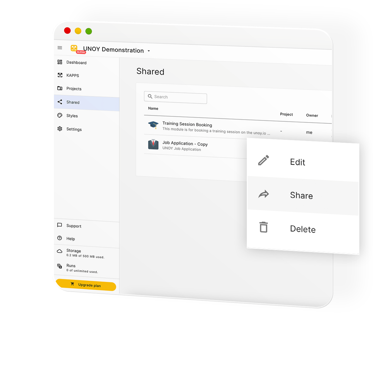 Share your KAPP’s with customers, your team or download them to have a backup of your knowledge.