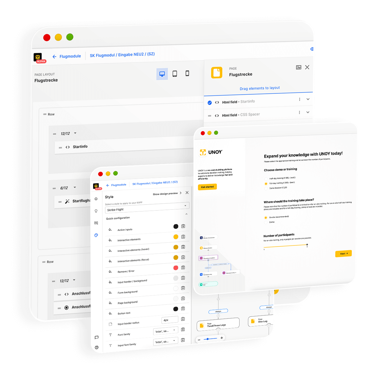 With UNOY’s intuitive no-code platform, you can easily build and customize your AI assistants (KAPPs)—all on your own. Digitize your expertise, scale your solutions, and take control of your AI tools, no programming skills required. Explore the simplicity of creating AI solutions tailored to your needs—hassle-free.