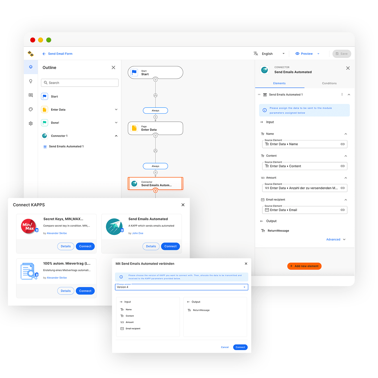 With a wealth of intuitive tools and ready-made KAPPs, you can immediately start implementing your ideas and revolutionising your work processes.