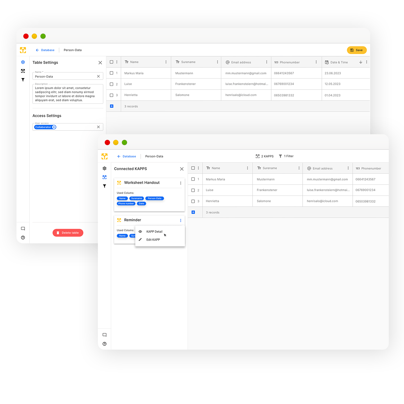 Our KAPPs have the ability to communicate with each other. This allows seamless data exchange between individual applications. You can simply send the generated data back and forth, creating an efficient workflow that promotes both productivity and collaboration.